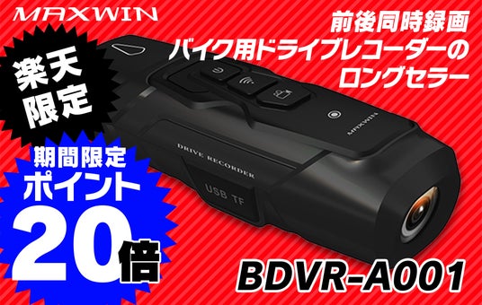 MAXWINの元祖バイク用前後同時録画ドライブレコーダー『BDVR-A001』が期間限定で楽天ポイント20倍キャンペーンを実施!