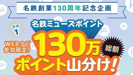 1.名鉄創業130周年記念 名鉄ミューズポイント130万ポイント山分け企画の実施