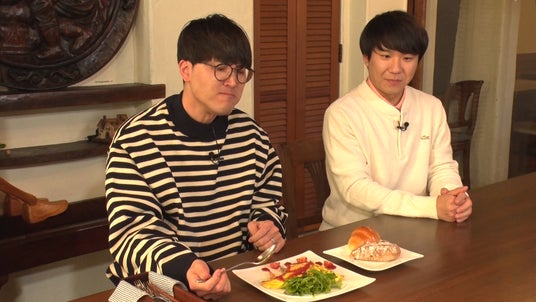 偽番組で食レポをする菊田竜大(ハナコ)と仕掛け人の秋山寛貴(ハナコ)