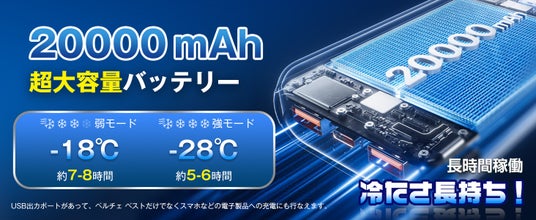 - 弱モード:外気温より最大-18℃冷却(7~8時間稼働)