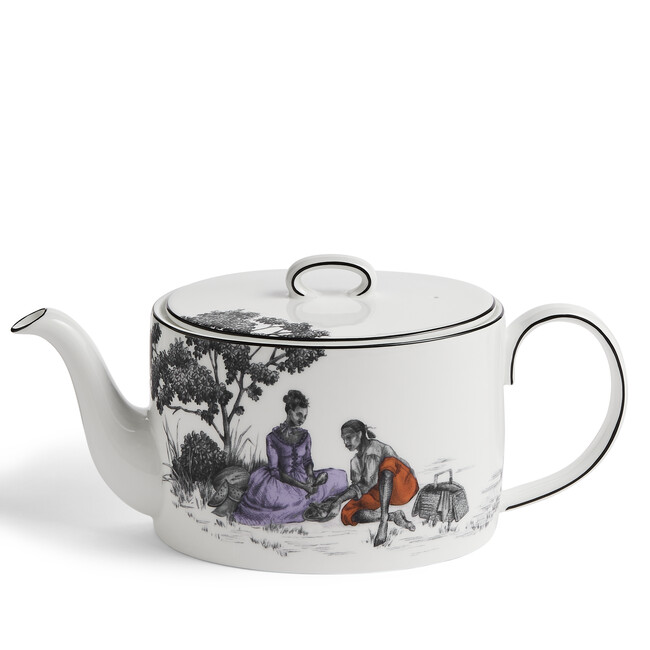 ウェッジウッドは、ニューヨークを拠点とするアメリカ人インテリアデザイナーを、大胆な好奇心で満ち溢れた場所(ウェッジウッド)に迎えました。平織物から始まったハーレム トワルと呼ばれるデザインで有名なシーラ・ブリッジスは、ウェッジウッドとコラボレーションし、テーブルウェアとティーウェアの限定コレクションを生み出しました。フランスの伝統的なトワル(平織物)からインスピレーションを受け、複雑な歴史と豊かな文化を称えたデザインで、シーラは定評のある彼女のハーレム・トワル・ド・ジュイ柄(Harlem Toile de Jouy)をウェッジウッドのファインボーンチャイナに大胆かつ遊び心のあるカラフルなデザインで表現しました。