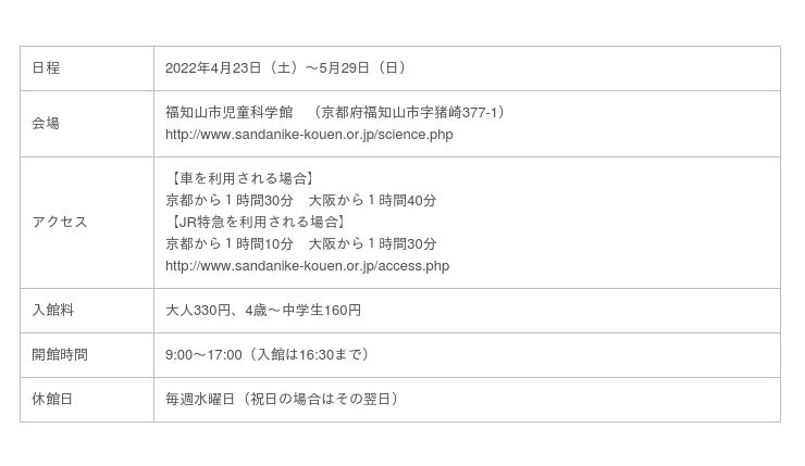 2022年4月23日(土)~5月29日(日)まで、「福知山市児童科学館」にて展示いたします。