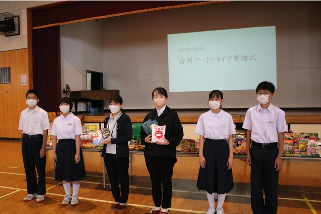寄贈式は、寺尾中学校の生徒の呼びかけで集まった寄贈品を、県内で活動するNPO法人三松会フードバンクまえばし(前橋市大手町)へ手渡します。生徒たちは寄贈までの過程を振り返り、それぞれの経験や視点から感想や課題を話し合います。