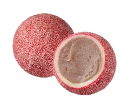 シャンパン「モエ・エ・シャンドン ロゼ アンペリアル」と愛知県田原市産の「紅ほっぺ」をふんだんに使ったルビーチョコレートのガナッシュをホワイトチョコレートで包み、ローズピンクのいちごパウダーで飾りました。ルビーチョコレートとストロベリーの酸味、シャンパンが織りなす、甘酸っぱい味わい。 ※アルコール分0.2%