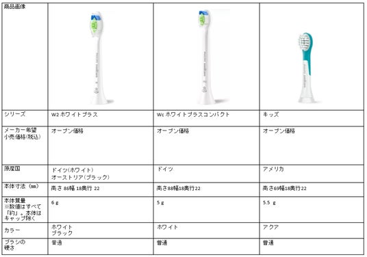 フィリップスソニッケアー ブラシヘッド製品仕様