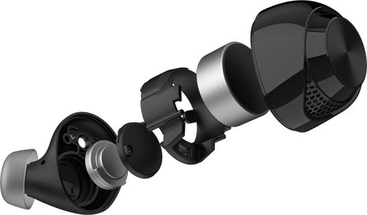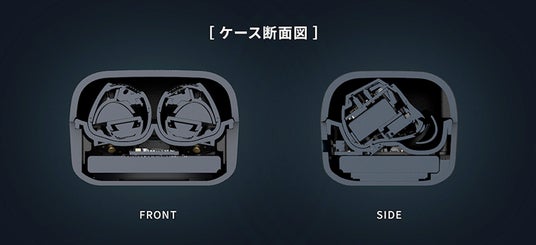 長時間再生とコンパクトなケースを両立するにあたり、独自設計のノズル形状とイヤーピースを採用。