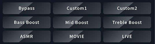 様々なジャンルの音楽を堪能できる「Bass Boost」「Mid Boost」「Treble Boost」に加え、まるで耳元でささやかれるようなリアリティを追及した「ASMR」、動画コンテンツのセリフや迫力を楽しめる「MOVIE」、ライブ会場のような臨場感の「LIVE」など、充実のラインナップをご用意しました。