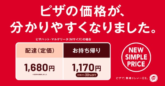 そこで今回、2024年10月15日(火)より、ピザの配達では「別途配達料をいただくことなく定価で」お買い求めいただけるようになり、お持ち帰りでは「定価から30%OFF」となる価格改定を実施いたします。