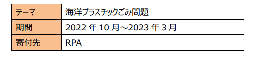 期間ごとにテーマを設け、テーマに沿った貢献活動を行う団体をパートナーとして、寄付活動を行っています。