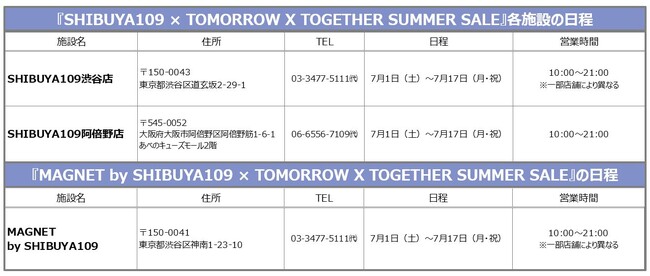 『SHIBUYA109 × TOMORROW X TOGETHER SUMMER SALE』