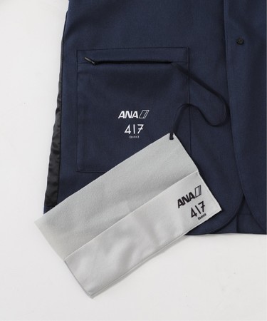 今回発売する新商品は、ストレッチや撥水などの実用的な機能に加え、洗濯機洗いに対応したイージーケア仕様を実現する独自開発の新素材「ultimex/アルティメックス」に加え、カチオン染めという特殊な染め方をしたポリエステル糸である「カチオン糸」の2種類の糸を使用。染め分けによる深みのある色合い、張りのある上質な生地感を実現しました。417 EDIFICEらしい都会的なデザイン・パターンを落とし込み、左内ポケットに昨今のマストアイテムであるマスクを収納でき、眼鏡やタブレットのクリーナーとしても活用できる専用抗菌ポケットなどのANA特別仕様の細かいアレンジを加えています。