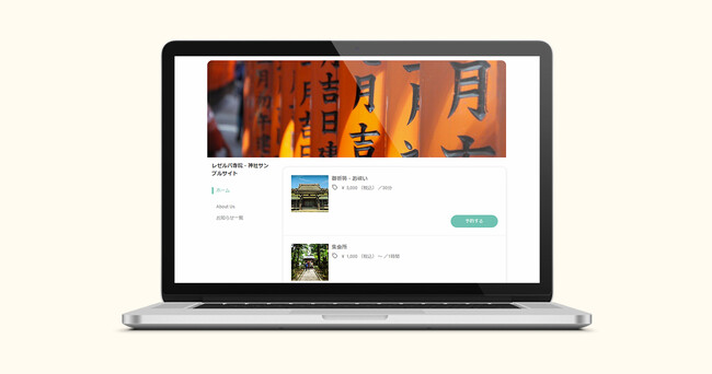 寺院や神社に対応した予約システム「RESERVA」のサンプル画面