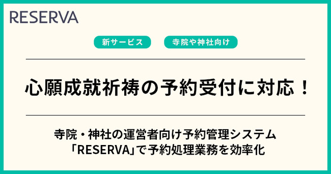 国内最大級の予約管理システム「RESERVA」を提供する株式会社コントロールテクノロジーは、年間5,000件を超えるイベント・セミナーに来場予約システムを提供しています。この度、年末年始に心願成就祈祷の申し込みを受け付ける寺院や神社の運営者に向けて、各儀式の予約に特化したSaaS型システムの提供を開始しました。本システムを導入することで、寺社の予約業務における効率化を実現します。