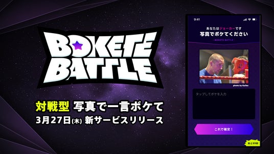 「あしたをオモシロク」の実現を目指すイベンテックカンパニー、bravesoft株式会社(読み:ブレイブソフト、代表取締役:菅澤英司、以下「当社」)は、株式会社オモロキと共同事業を展開し累計800万件(※1)ダウンロードを誇る「写真で一言ボケて(bokete)」の最新作となる新作ゲーム「ボケてバトル」を3月27日(木)18時にリリースしました。