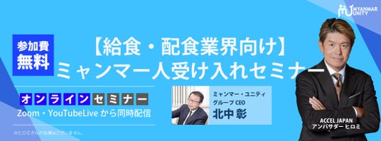 ミャンマー政府認定圧倒的No.1人材送り出し機関「ミャンマー・ユニティ」は、2024年6月12日(水)に「【給食・配食業界向け】ミャンマー人受け入れセミナー」を開催いたします。