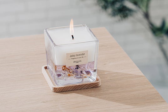キャンドルを美しく保てるよう、無垢素材のキャンドルカバー兼コースターを付属。