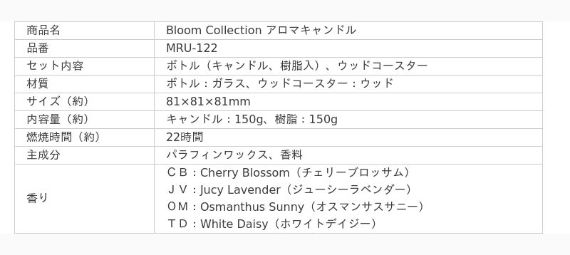 「Bloom Collection アロマキャンドル」 MRU-122