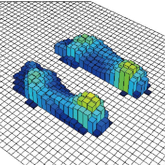 直接フローリングに立った場合と、『ROOP ふかふか雲の上スリッパ ハズミーナ』を履いて立った場合の体重の加圧状況を比較したところ、『ROOP ふかふか雲の上スリッパ ハズミーナ』を履くことで高加圧面積が減少しました。これにより、足への負担を和らげる効果が見込まれます。