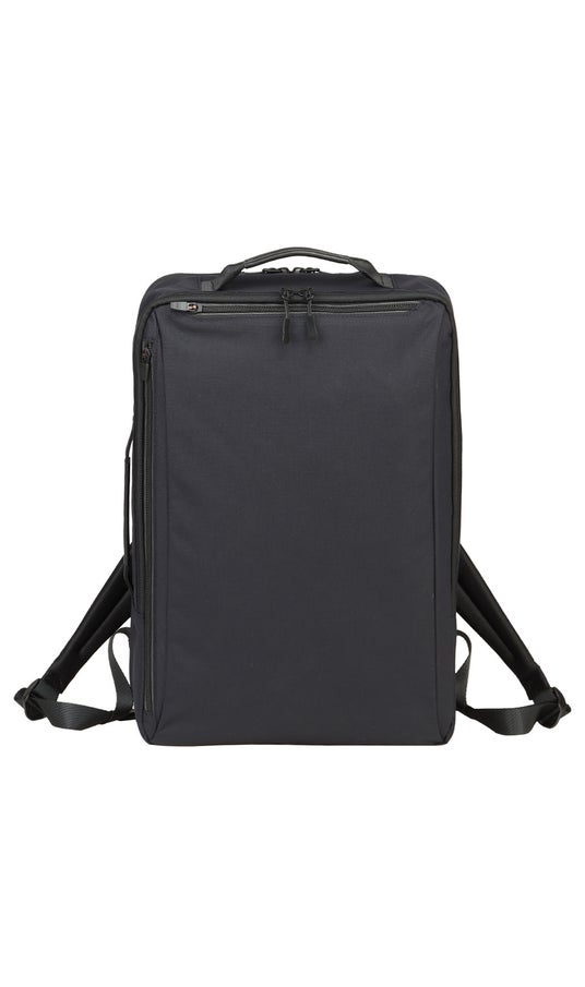 素材は、糸くずを集めて作られたリサイクルナイロン100%を使用。さらに、糸を膨らませてコットンライクな加工を施すことで、柔らかく軽さも兼ね備えた素材です。またビジネスリュックに必需な機能として、撥水加工も施し急な雨でも安心して使用することができます。デザインは、電車通勤でも使いやすいマチ幅を抑えたスクエア型になっていることに加えて、サステナブルを意識したこれまでにないビジネスリュックになっています。