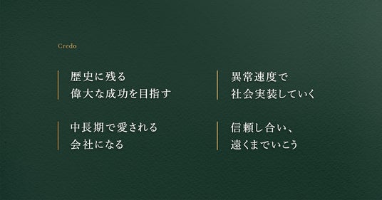 当社は2024年4月の創業以来、AIを前提としたプロダクトおよびサービスの開発を通じ、人々の成功と企業の成長へ向けた支援に取り組んでまいりました。今般、AIエージェント時代の本格的な到来を受け、働く人々を定型的な「作業」から解放し、対人・対組織の業務に専念できる環境を構築するという当社の姿勢をあらためて明確化するため、パーパスを更新いたしました。また、これに伴い社員の行動規範を再定義いたしました。