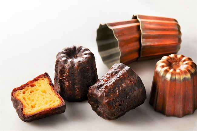 本場フランスの製法である銅の型を使用し、表面を天然のワックスともいわれる蜜蝋(みつろう)でコーティングすることで、外はカリッと香ばしく中はモチッとした本格的な食感に仕上げました。また、熱伝導の高い銅製の型で焼き上げることで、均一に焼き色が入り、独特のツヤ感のある美しいカヌレが出来上がります。