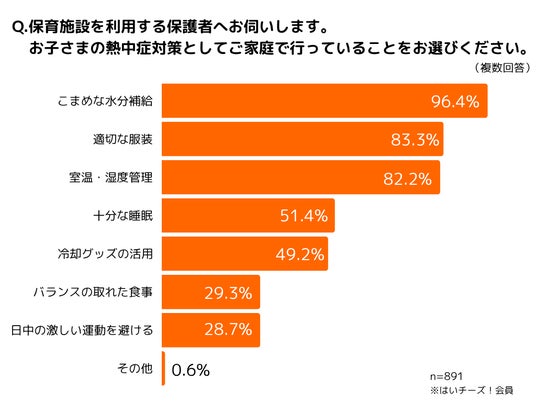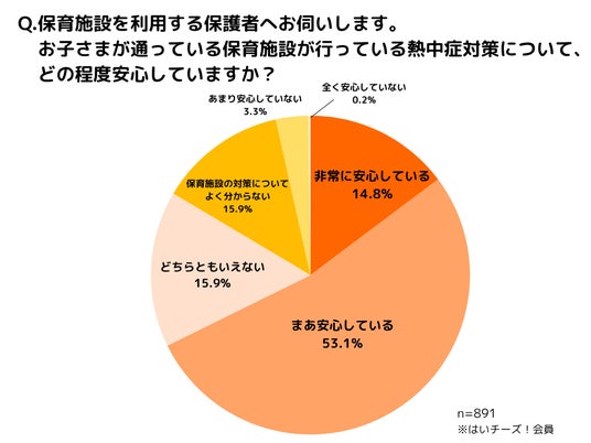 こうした保育施設の対策について保護者の67.9%が「安心している」と回答しており、酷暑に備えた対策が一定の評価を得られていることが明らかになりました。