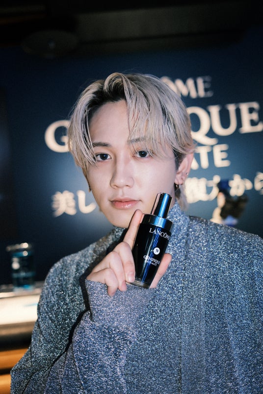 森愁斗さん「今日のイベントを通して、ランコムがサイエンスに本気で向き合っていることに感動しました。これからジェニフィック アルティメ セラムを使って美容意識をさらに高めたいです。」
