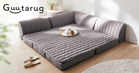 『グータラグ』は長年「コーナークッション」のシリーズ名で親しまれてきた、ベルメゾンのラグ・背もたれが一体化したローソファーのシリーズで、2012年に初代が発売されて以来改良を重ね、累計6万台の売上を突破しました。「グータラ」を怠惰と捉えるのではなく、心身がリラックスした状態で心地よい時間や会話が生み出される状態を表現したいという思いを込め、2024年にはシリーズ名を「グータラ」と「ラグ」を掛け合わせた『グータラグ』へ変更しました。