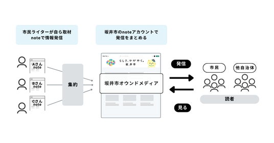 坂井市に対し、noteが月額8万円(税抜)で提供している法人向け高機能プランnote pro(https://pro.lp-note.com/)を無償提供します。市民ライターは坂井市のヒト・モノ・コトを自ら取材・執筆し、市民や市外の方に地域の魅力を発信します。