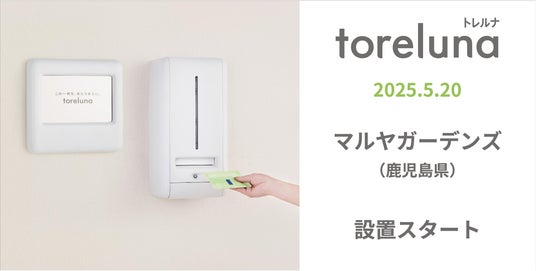 株式会社ネクイノ(大阪市北区、代表:石井 健一)は、トイレの個室で生理用ナプキンを常備し無料で提供するサービス「toreluna(トレルナ)」(以下 トレルナ)を、5月20日より、鹿児島市中心部・天文館エリアの商業施設 マルヤガーデンズ(鹿児島市呉服町)へ20台を設置し、サービスの提供を開始いたしました。なお、本サービスの鹿児島県内への設置は、今回が初の取り組みとなります。