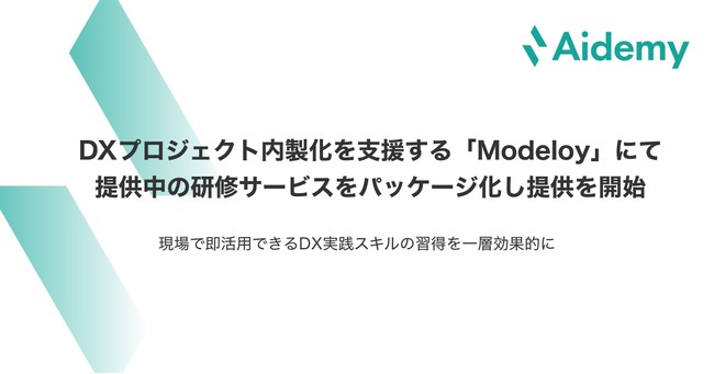 アイデミーは、AI/DXプロジェクト伴走型内製化支援サービスである「Modeloy」を提供しております。Modeloyでは、DX実現のための組織コンサルティングやワークショップなどの組織開発支援を行っており、ご要望に応じてオフラインやオンラインでの研修サービスも提供してまいりました。