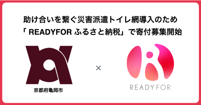 READYFOR株式会社(本社:東京都千代田区、代表取締役CEO:米良はるか)が運営する自治体向けクラウドファンディング「READYFOR ふるさと納税」にて、新たに京都府亀岡市がプロジェクトを開始いたします。クラウドファンディングを通じて集める寄付により、災害派遣トイレトレーラー導入を目指します。
