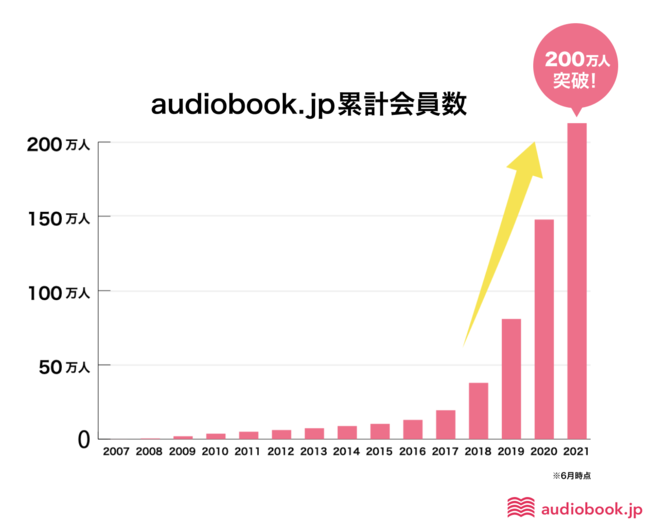 オトバンクは、一般向けのオーディオブック聴き放題プランを2018年から開始。「教養をつけたい」「仕事のための学習」などを目的に、耳のスキマ時間にオーディオブックを利用される方が増えており、2021年6月には登録会員数が200万人を突破しました。