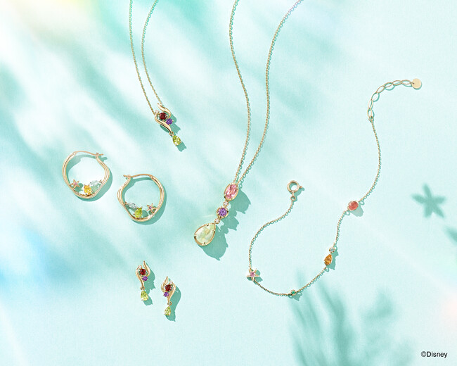 「アリエル」をイメージしたイエローゴールドとカラーストーンの組み合わせ。