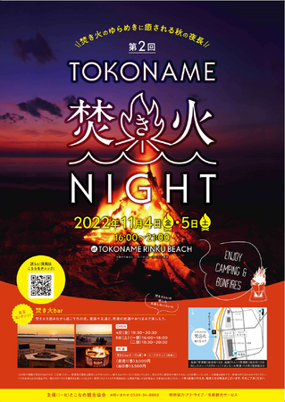 りんくうビーチで焚き火を囲んで常滑の夜を楽しむイベント「焚き火ナイト」が開催されます。