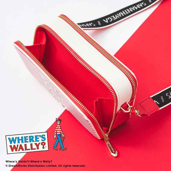 ショルダーバッグは2層式で、裏地にも「ウォーリー」をイメージするレッドを使用。