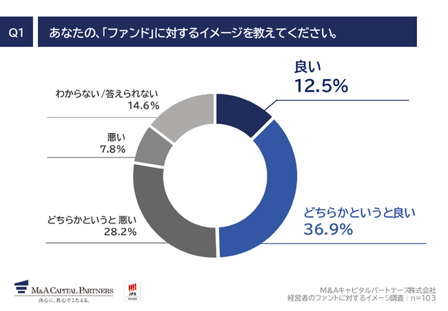 M&Aキャピタルパートナーズ株式会社(東京都中央区・代表取締役社長 中村悟)は、過去にM&Aを検討したことがある未上場企業の経営者103名を対象に、経営者のファンドに対するイメージ調査を実施しましたので、お知らせいたします。