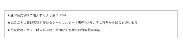 先行入場、来場者プレンゼント絶対にもらえるんだモン!など、通常のシーズンシートと同様になります。詳細は下記をご確認ください。