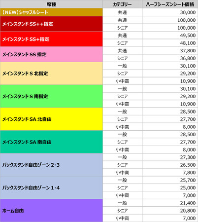 シャッフルシートは、スタジアム観戦をいろいろな席種で楽しめるハーフシーズンシート!