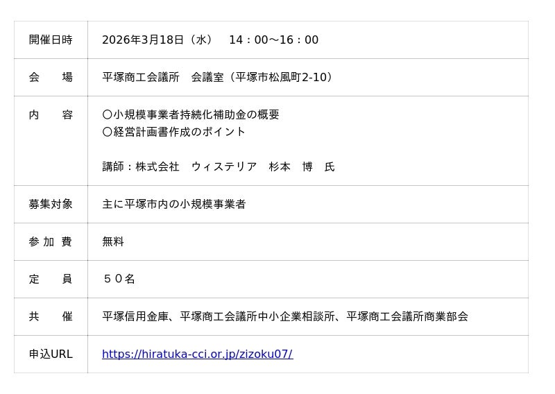 平塚信用金庫は平塚商工会議所と共催セミナーを開催します。
