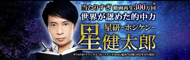 日本国内だけでなくアジア各国のTV番組出演、雑誌掲載で人気を博し、占い動画の総再生数300万回超(※2021年10月時点)を誇る占い研究者『星健太郎』。多くの人々を鑑定し、願いを叶えてきた的中鑑定で、あなたの運命を明らかにしていきます。