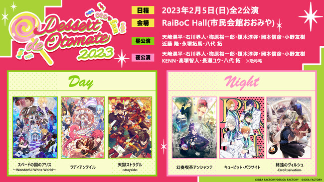 アイディアファクトリー株式会社の女性向けゲームブランド「オトメイト」は、2023年2月5日(日)開催予定、オトメイトファンイベント「Dessert de Otomate 2023」の公式ページを公開しました。