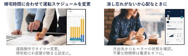 「デロンギ コンフォート アプリ」をインストールしたスマートフォンで、いつでもどこからでもヒーターにアクセス。遠隔操作で帰宅前に部屋を暖めたり、消し忘れたときには外出先からもヒーターの停止も可能です。