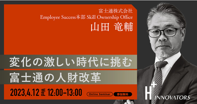 本セミナーでは、富士通株式会社のEmployee Success本部 Skill Ownership Officeにてシニアディレクターを務める山田竜輔氏をお招きし、「変化の激しい時代に挑む富士通の人財改革」についてお話しいただきます。