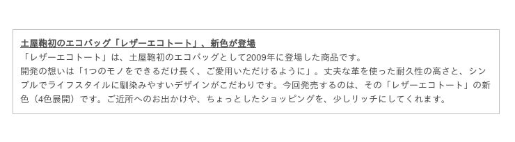 オリジナルの革鞄・小物を製造販売する老舗、(株)土屋鞄製造所(東京都足立区)は、上質な国産ピッグスエード(豚革)を使用した、長く使える革のエコバッグ「レザーエコトート」の新商品を2021年4月15日(木)から発売します。