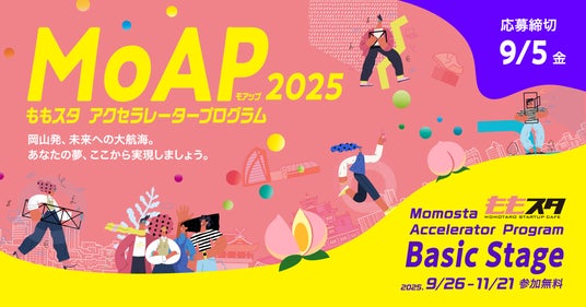 Creww株式会社(代表取締役:伊地知 天、以下「Creww(クルー)」)と岡山市は、創業前後の起業家を対象に、事業成長を加速させることを目的としたアクセラレータープログラム『MoAP(ももスタアクセラレータープログラム“モアップ”)2025 ~Basic Stage~』(以下、本プログラム)を開始することをお知らせします。