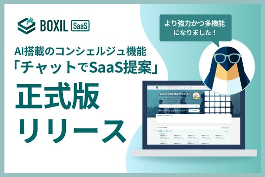 スマートキャンプ株式会社(本社:東京都港区、代表取締役社長CEO:林 詩音、以下「スマートキャンプ」)は、SaaS比較サイト「BOXIL SaaS(ボクシル サース)」において、AI搭載のコンシェルジュ機能「チャットでSaaS提案」を、2024年10月17日より正式にリリースしたことをお知らせします。