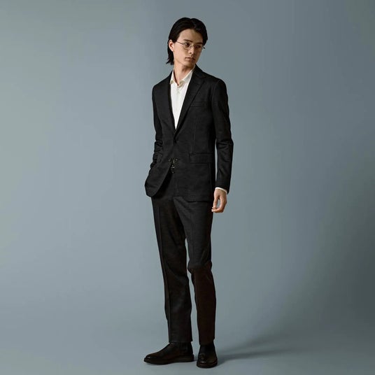 PREMIER JERSEY WOOLは上質なエクストラファインウールを使用することで、ジャージーの快適な着心地はそのまま、ウールならではの上品な艶が信頼感を生む1着に。