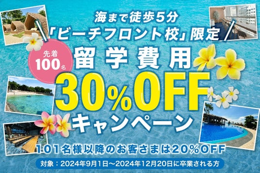 「ビーチフロント校」限定留学費用30%OFFキャンペーン概要