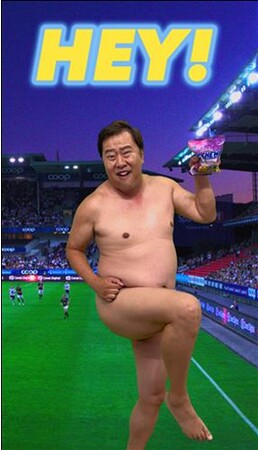 (今日は、サッカーファンの全裸ポーズを披露します)